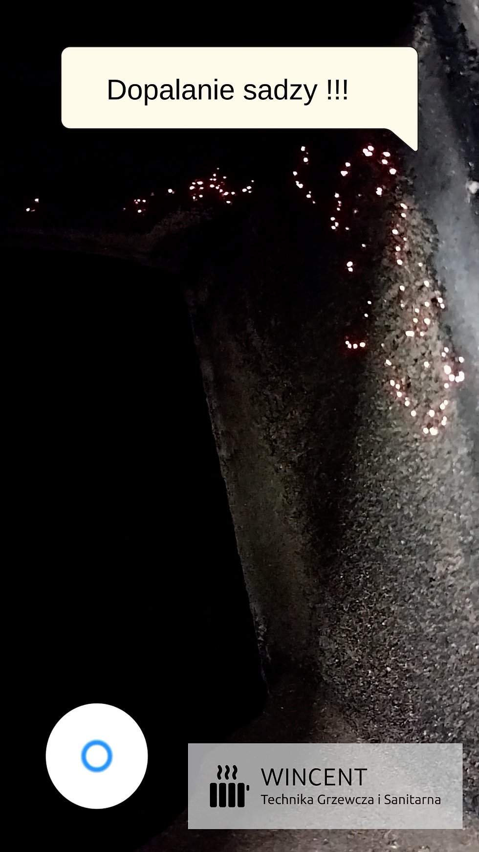 👉 Dowód 2: Dopalanie się sadzy na gorących ściankach komory lub na deflektorach. Takie zjawisko najłatwiej zaobserwować, gdy wyregulujemy proporcje mieszanki we właściwy sposób na kotle, który do tej pory pracował na złych parametrach i jego ścianki zarosły czarnym osadem. Obserwujemy wtedy fascynujący proces dopalania tej starej sadzy w postaci skaczących iskierek, wędrujących jedna za drugą – od miejsca już wypalonego, do następnej warstwy brudu. Z kolei gdy kocioł pracuje we właściwy sposób stale, po prostu tego nie widać. Każda drobinka sadzy, która ewentualnie powstanie, jest dopalana na bieżąco, a komora pozostaje czysta!